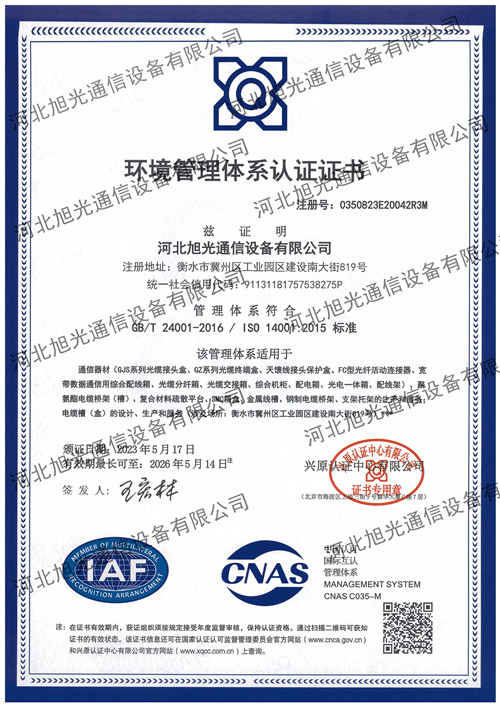 环境体系认证证书